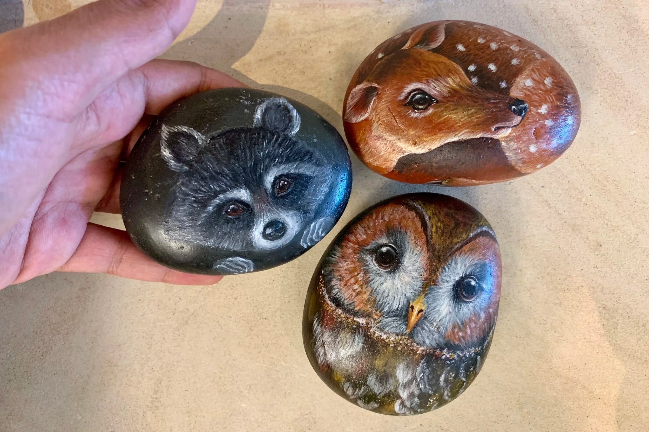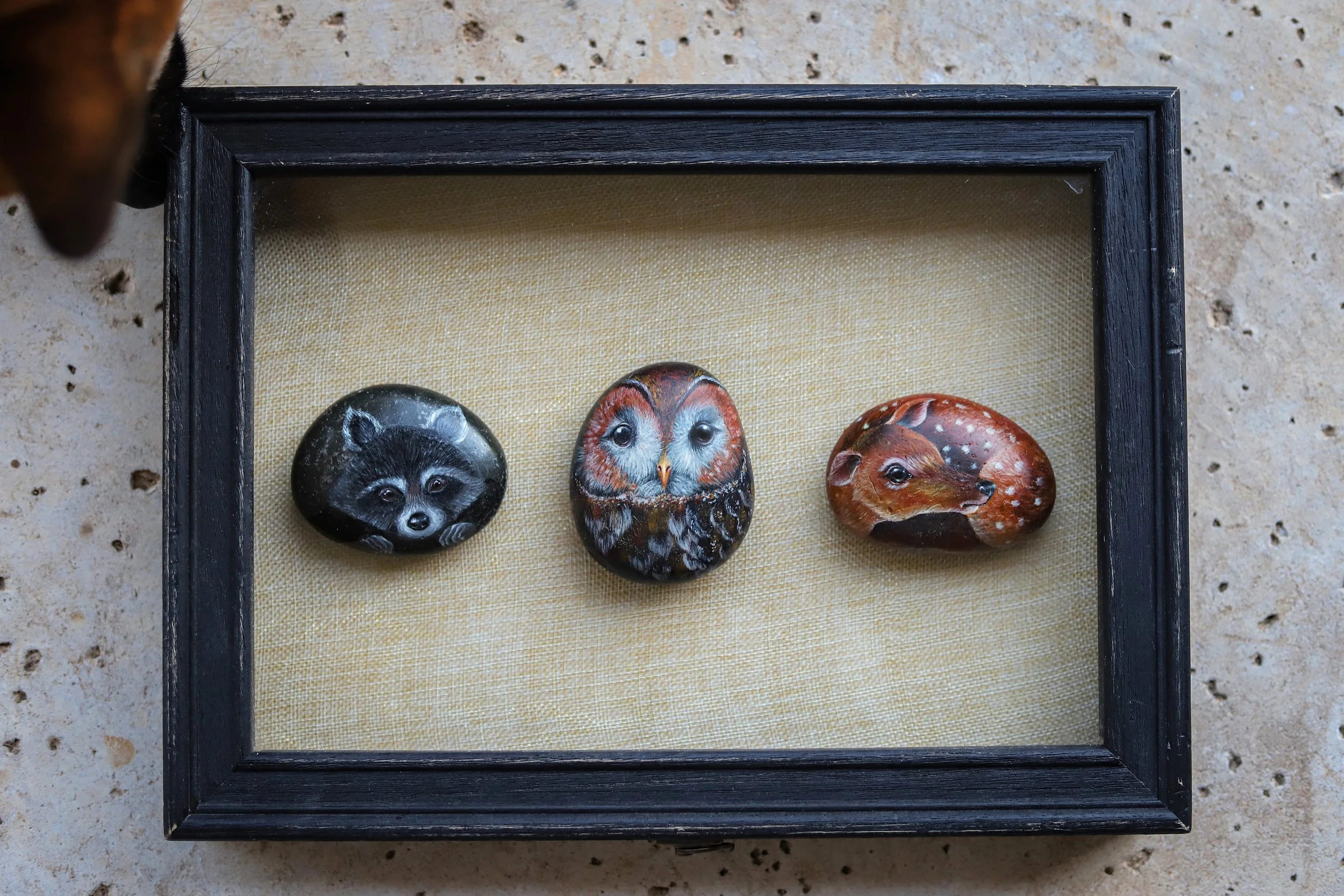 Woodland | stones measure ~3.5” across; mounted 11" x 15" | gouache on stone