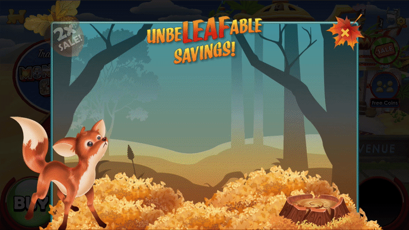 The splash screen is the players’ foray into MONOPOLY Slots; usually themed around seasons or in-game events!