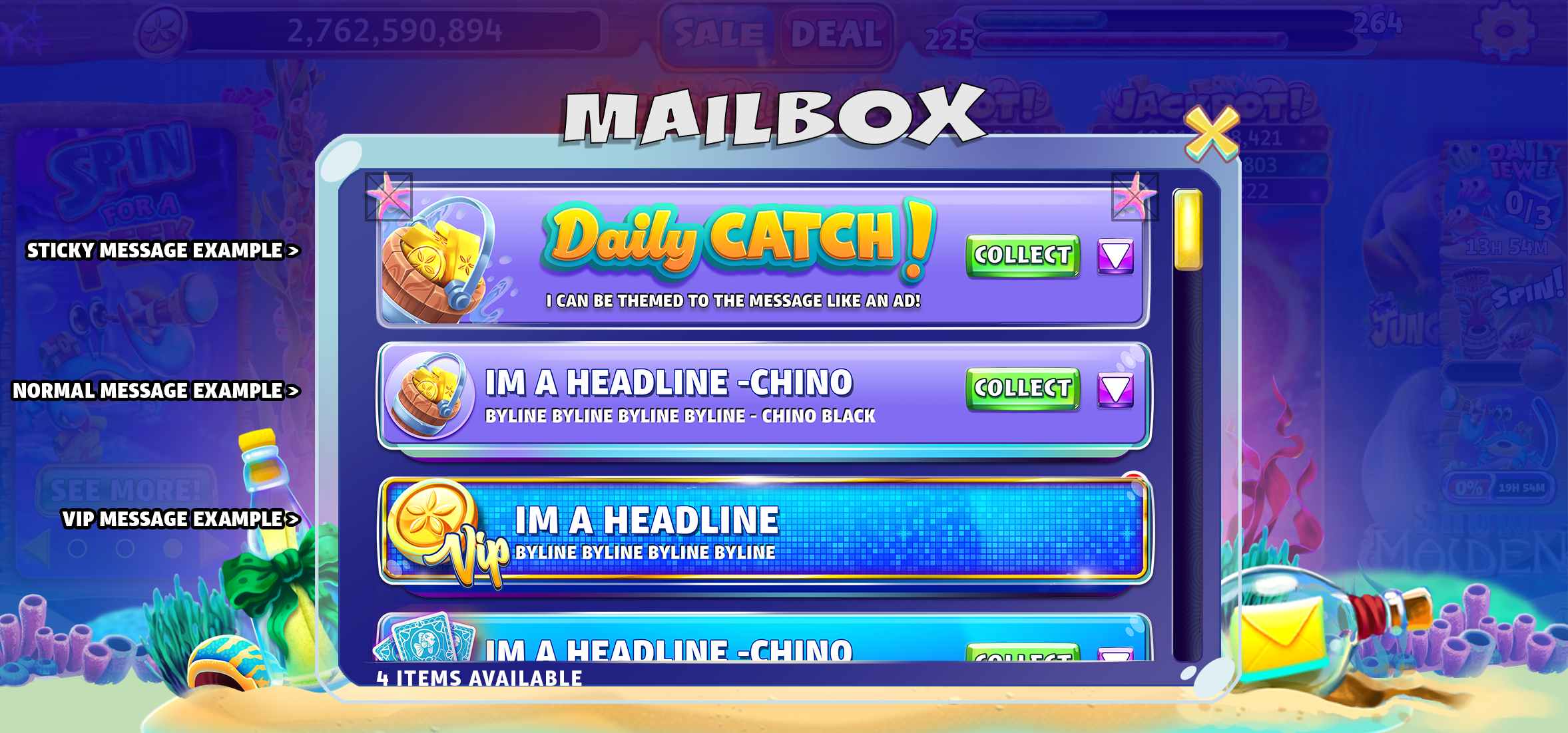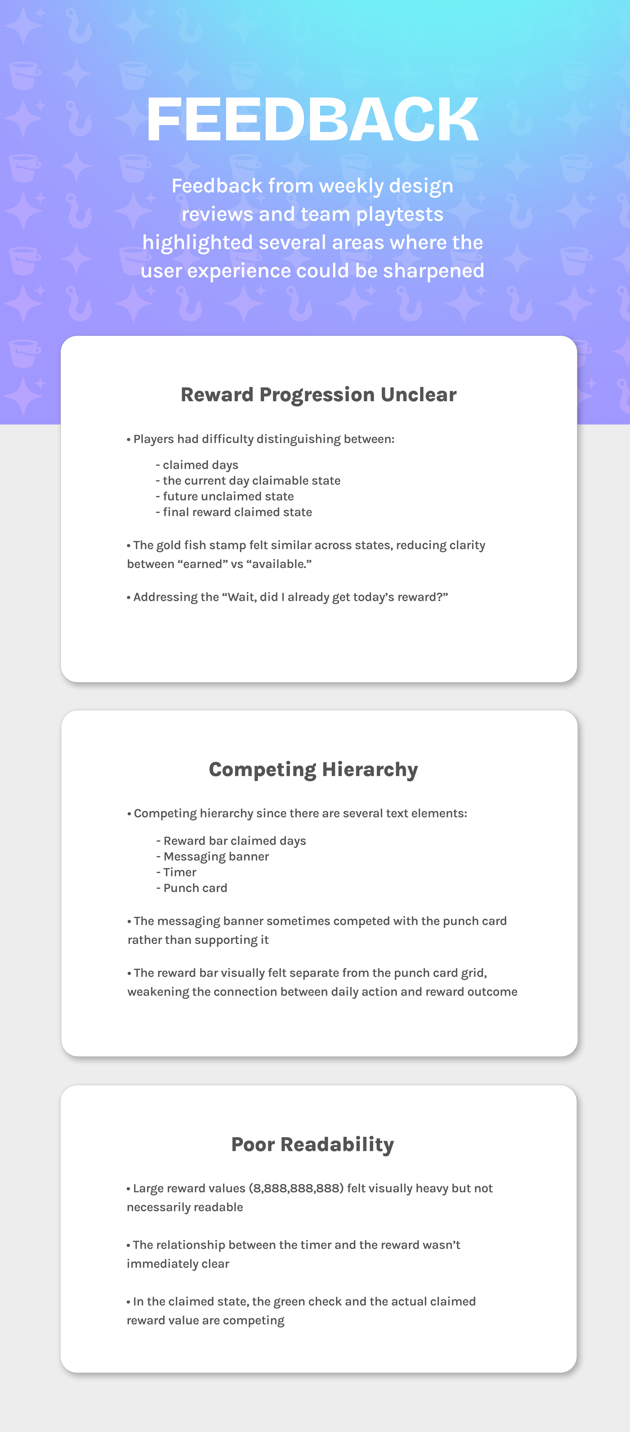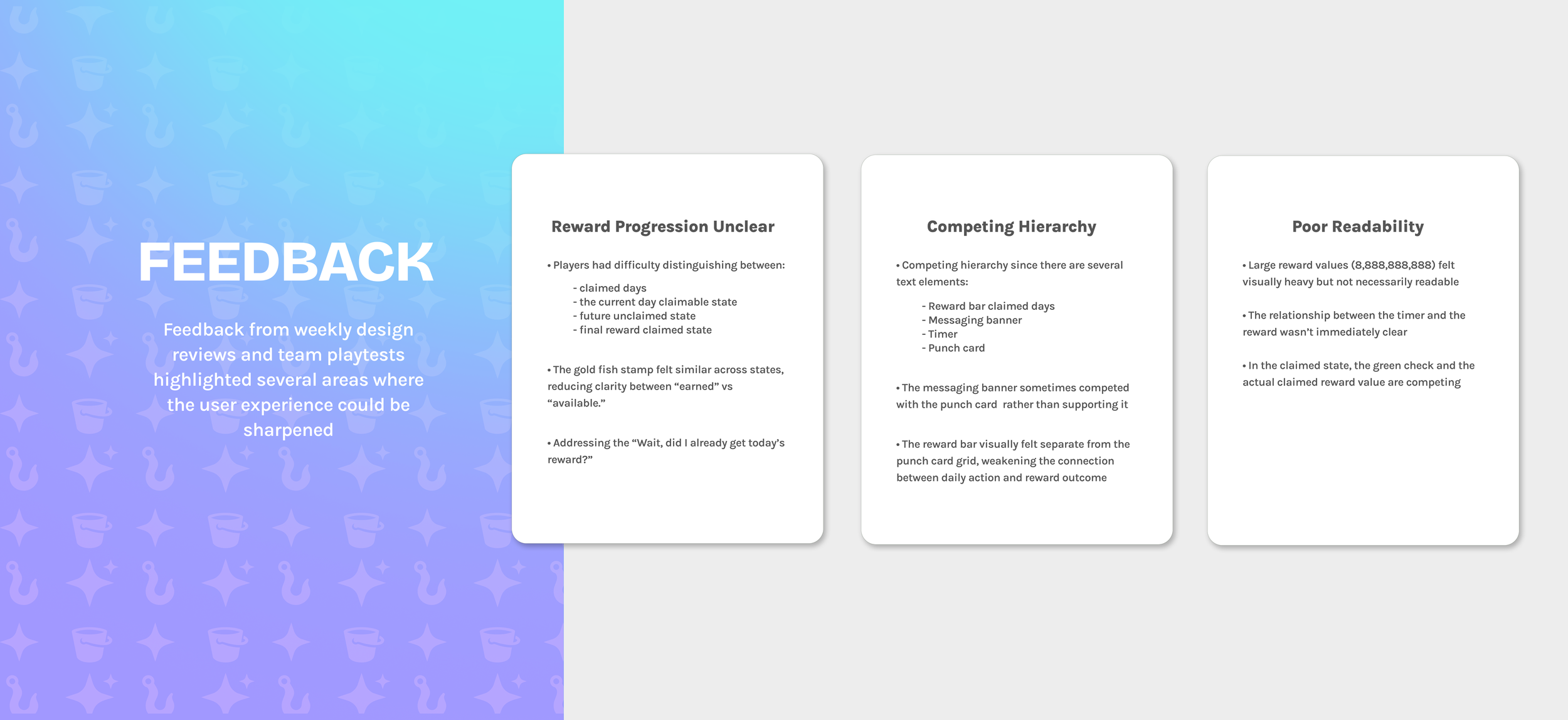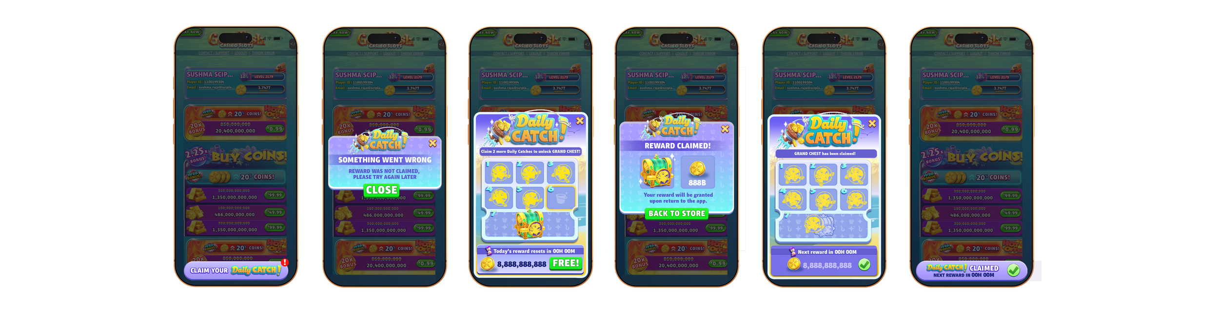 DAILY CATCH is a habit-forming daily login system that rewards players with currency, items, and boosts; packaged as a satisfying, stamp-able punch card.