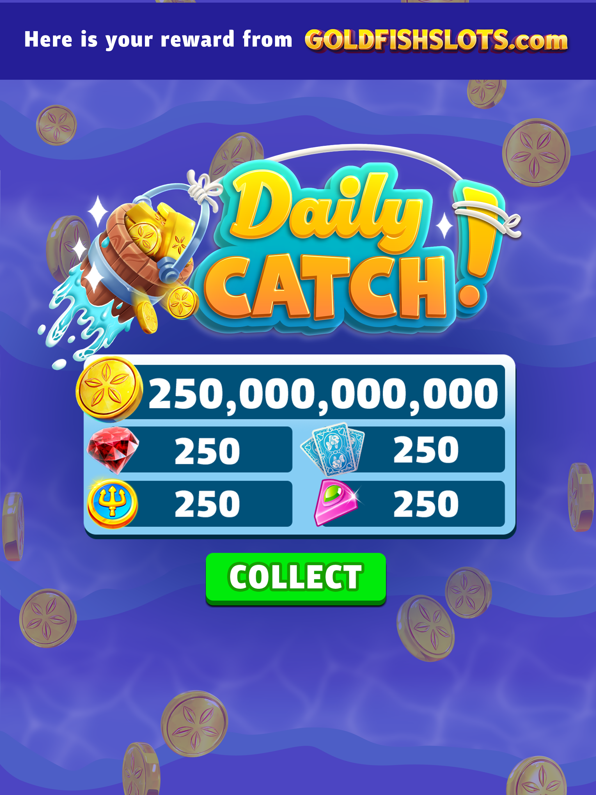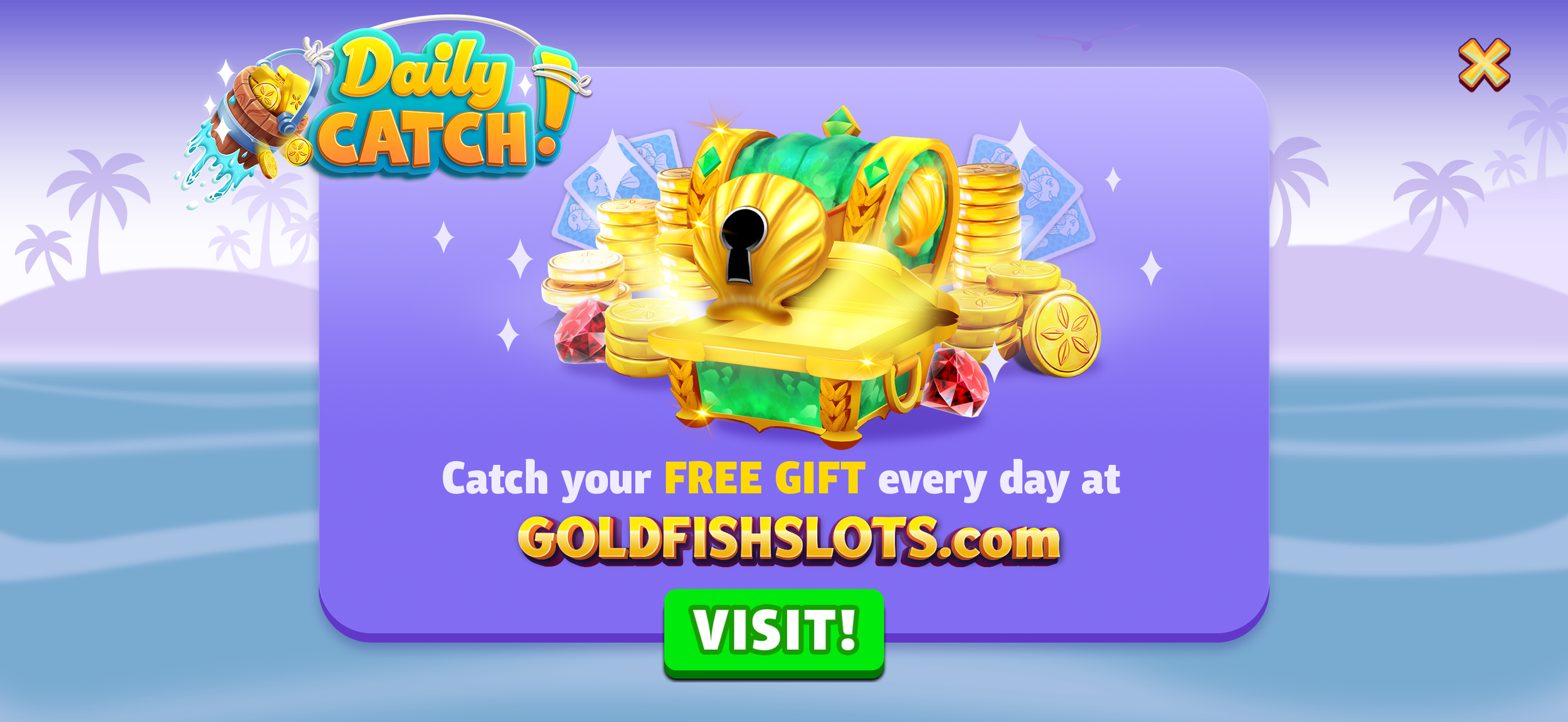 In-app reward popup matching existing game currency bar, branded with the Daily Catch logo