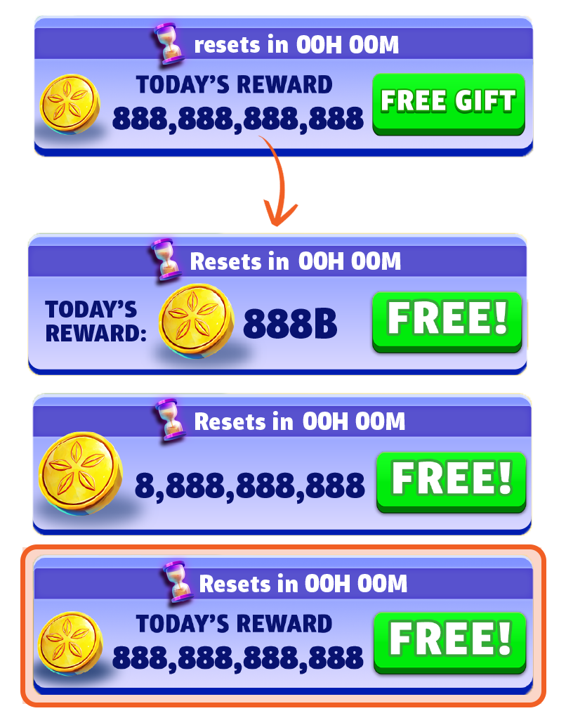 • Large reward values (8,888,888,888) felt visually heavy but not necessarily readable