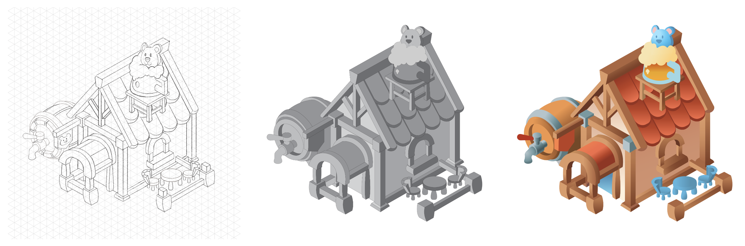 Blue sky ideation and mark-making with gouache, woodburning, and of course, pixels.