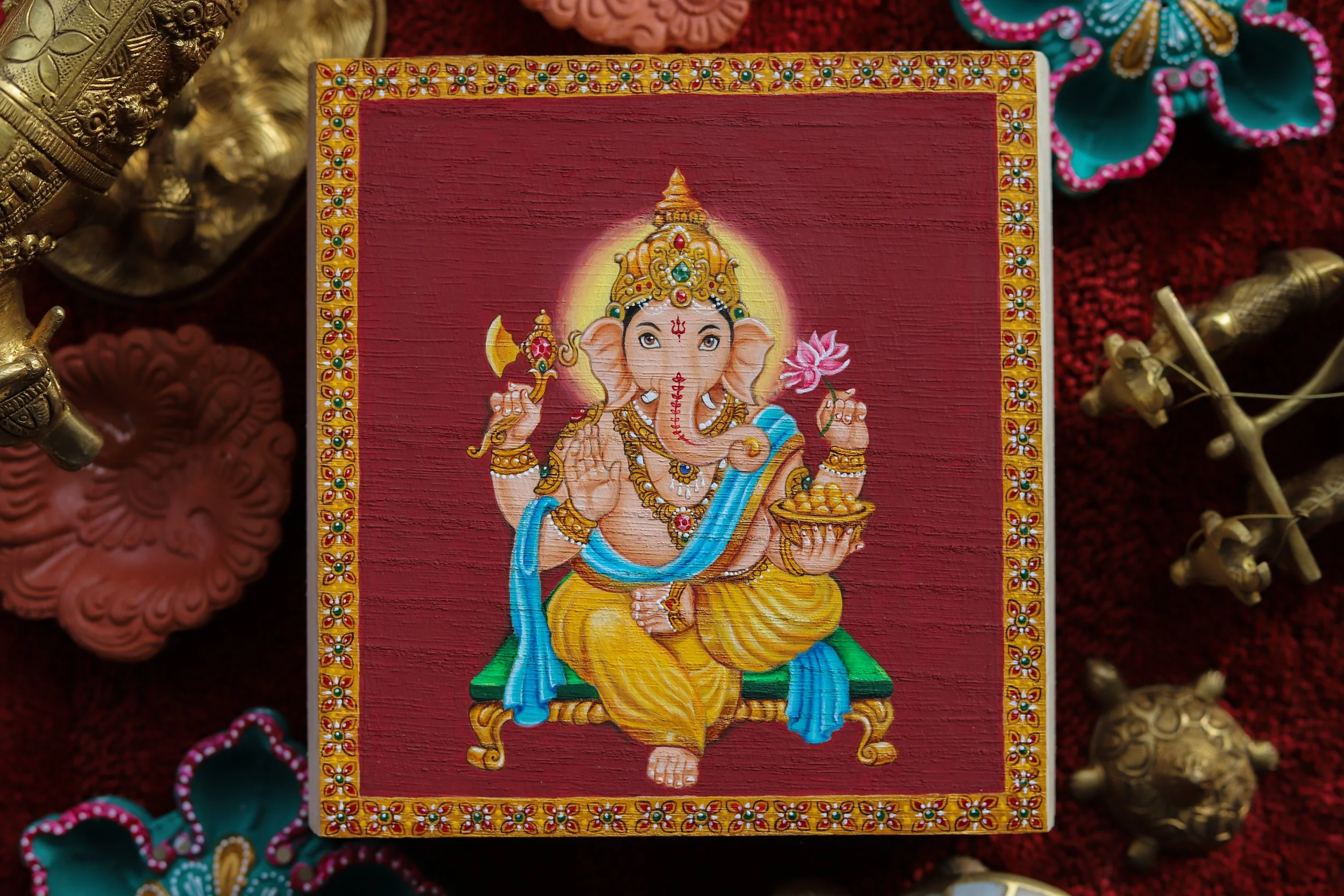 Ganesha | 10” x 12”, gouache and acrylic on wooden box