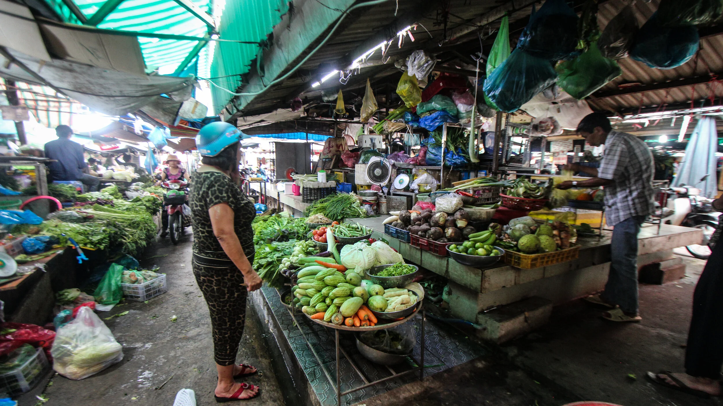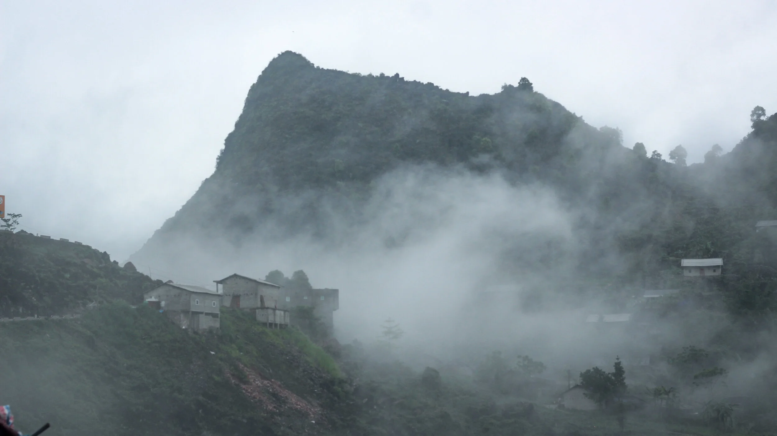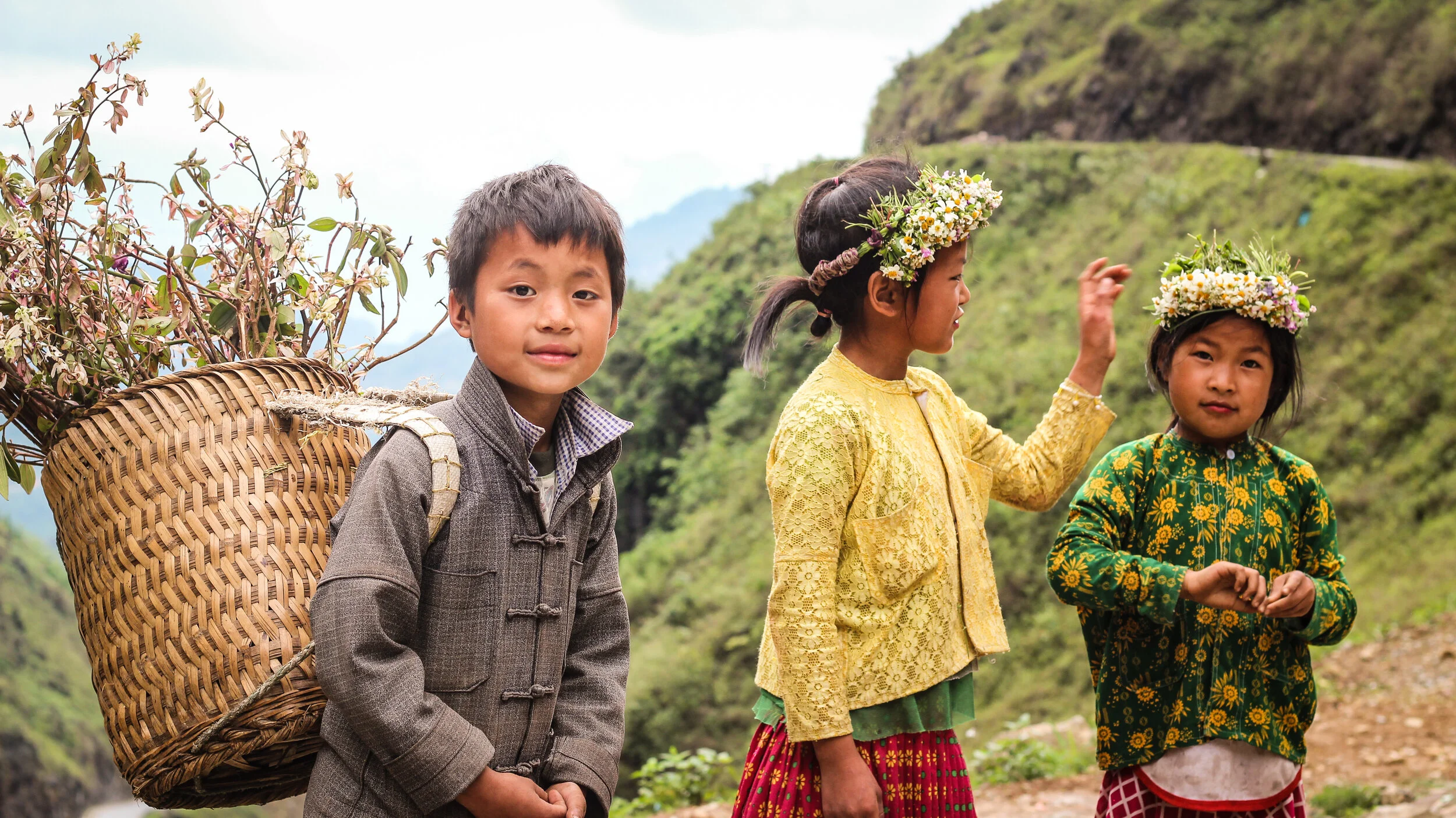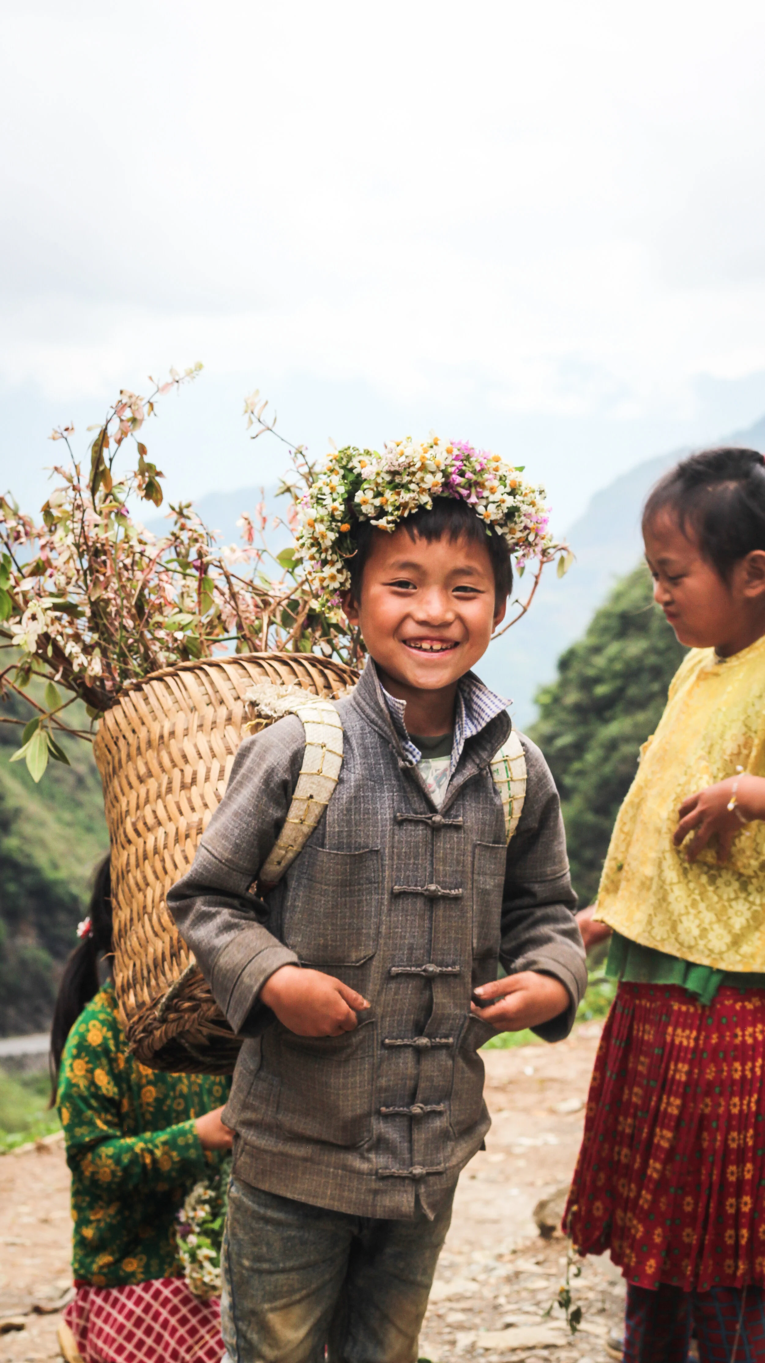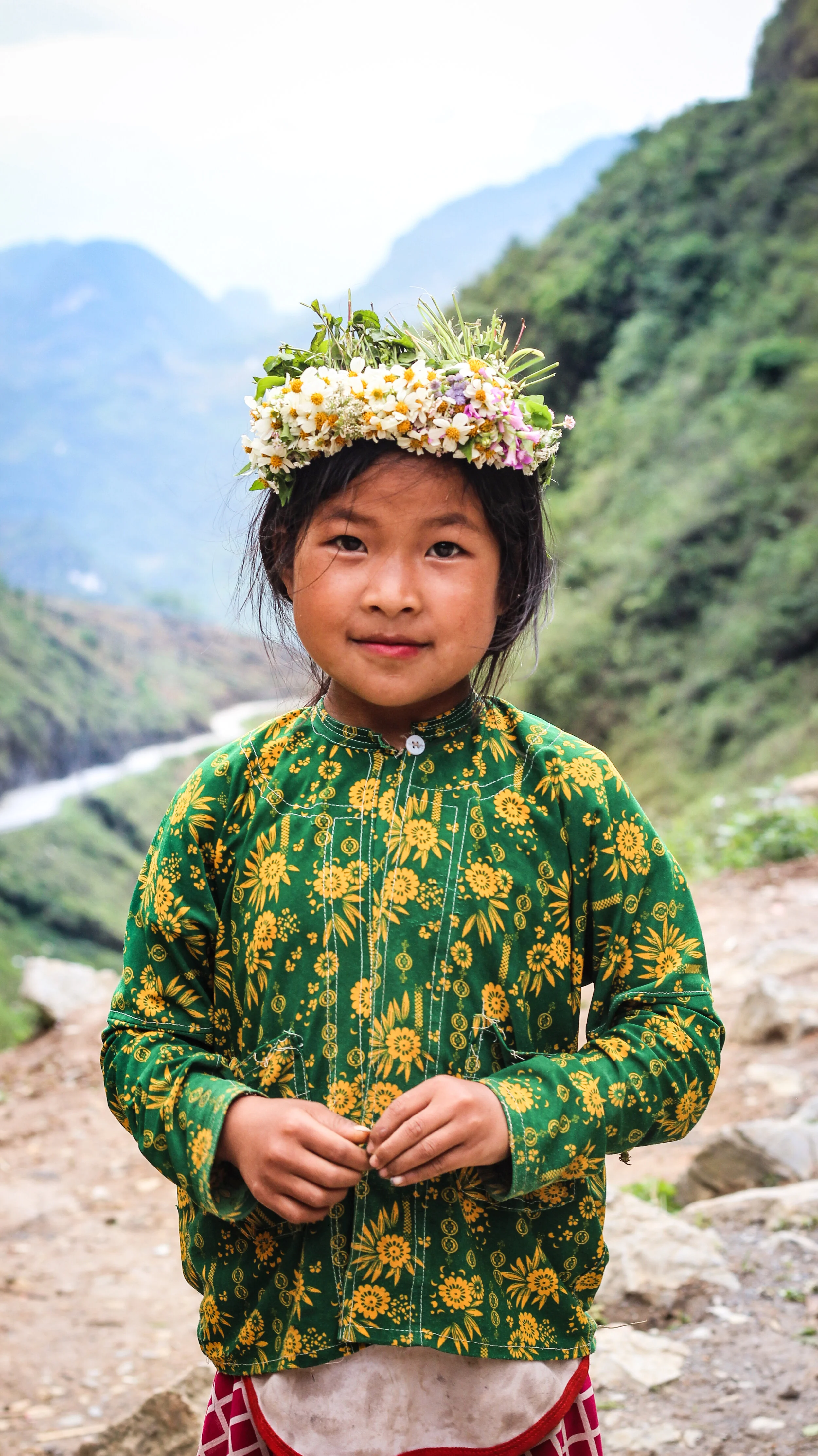 The landscape in Ha Giang is overwhelmingly beautiful. Limestone ridged mountains rise up in pyramidal shapes before sinking to hundred-foot mounds and then climbing once more to 5,000-foot peaks. Rice terraces slice along precariously steep mountainsides, hanging over blue snaking rivers, beneath blood-curdling bends. Colorful farmland climbs to rocky, edged cliffs before rolling off to distant pine forests.